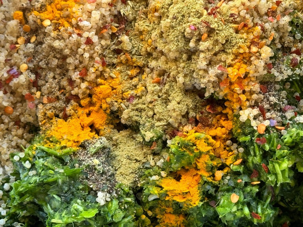 1/2 כפית מכל אחד: כמון, צ׳ילי יבש, כורכום