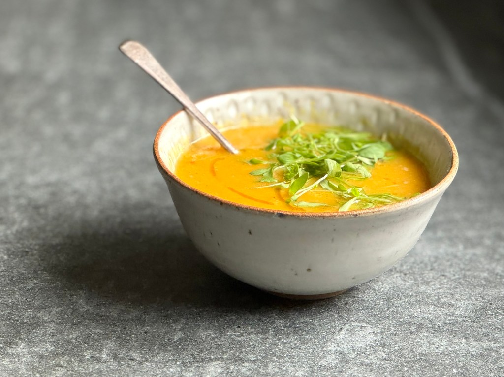 אפשר לשחק עם סוג הירוקים שמעל (כאן יש נבטי כוסברה)- שמיר, פטרוזיליה, עירית וכולי. כל אחד או ערבוב של כמה, יתן למרק אופי מעט שונה