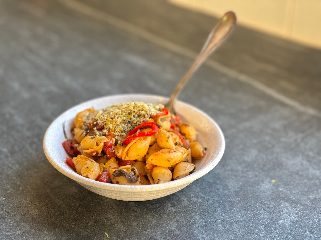 – כפסטה ללא גלוטן אני מעדיפה את Banza, שהיא פסטת חומוס טעימה. אני מוצאת שהיא משביעה יותר מפסטה רגילה, בעיקר כשכמות שמן-הזית שבמתכון נדיבה פלוס- ולכן הכמות הצנועה שבמתכון. (הפסטה הזו אוהבת בישול יתר)