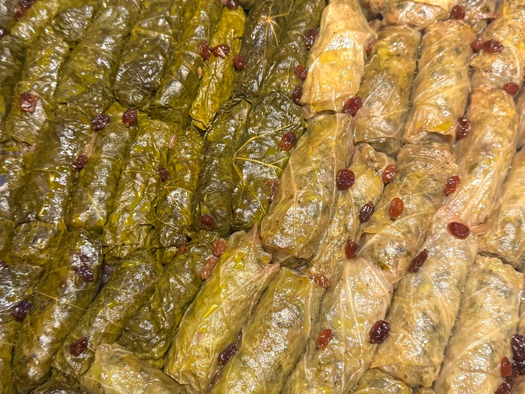 למילוי העלים: מניחים בקצה כל עלה כף מהמלית ומגלגלים.