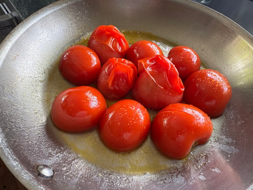 אם הן עדיין מתעקשות לדבוק בעגבניה, מחזירים לאידוי נוסף, אפשר עם כמה טיפות מים.