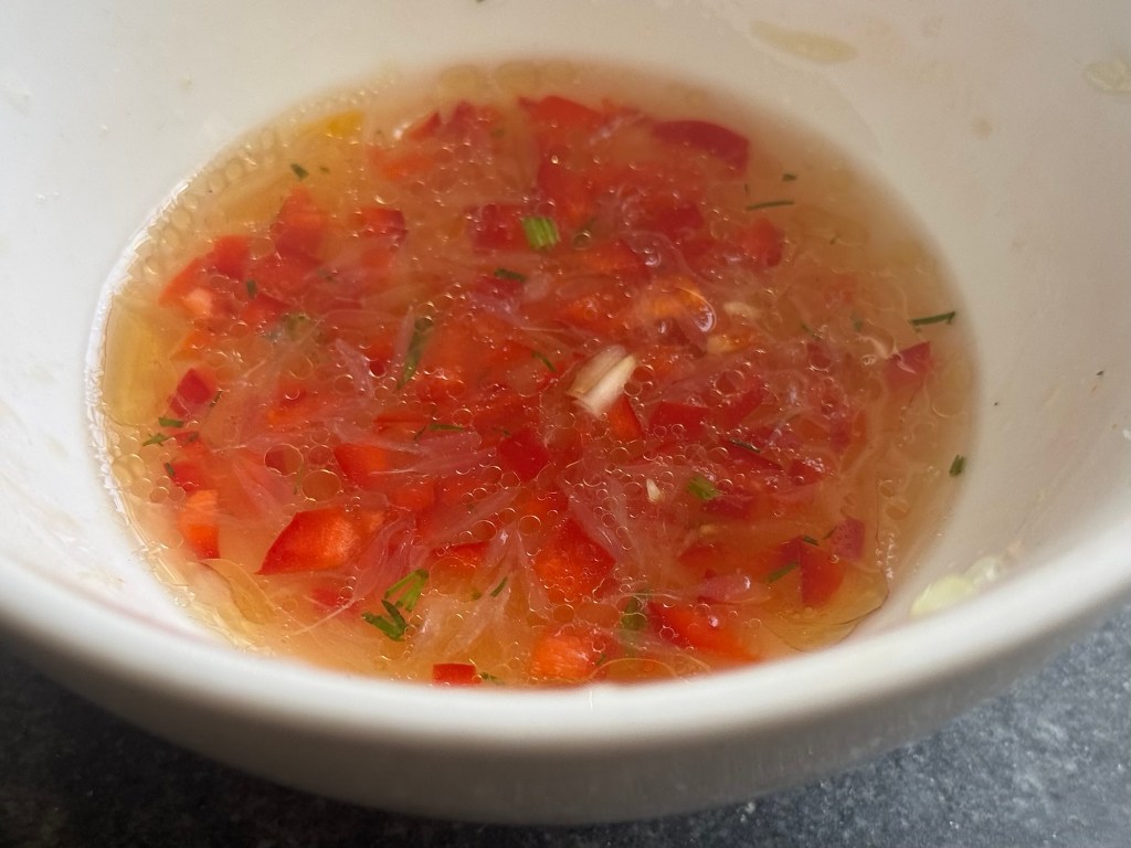 מערבבים הכל טוב. הרוטב צריך להיות עז טעמים- חמוץ, מתוק וחריף ממש