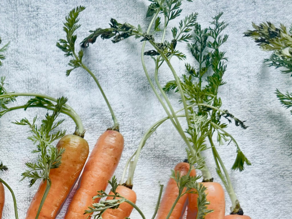 מניחים את הגזרים בסיר עם מים והרבה מלח, מביאים לרתיחה ומבשלים כעשר דקות. הגזרים ריקים להיות עדיין נגישים ולא רכים לגמרי. שוטפים במים קרים, חותכים לטבעות של כ-1/2 ס”מ ומעבירים לקערה.