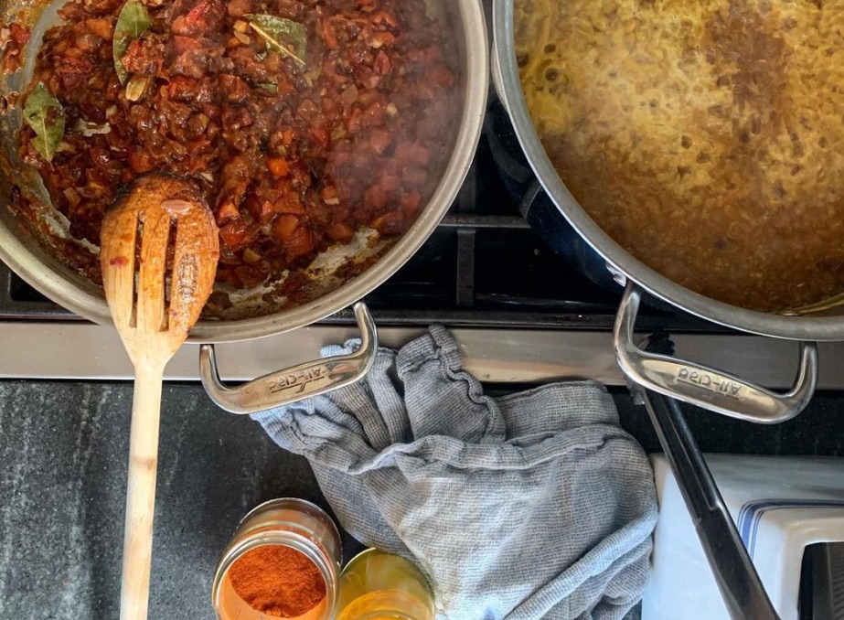 מוסיפים עוד מים לפי הצורך ומבשלים בפנים כל חלבון שרוצים. אפשר לצלות ירקות בתנור ובעת ההגשה למזוג מעל