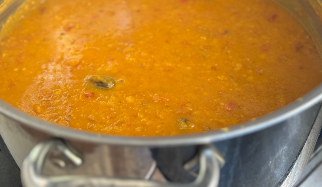 מוסיפים לסיר את חלב הקשיו ועוד שתי כוסות מים. מביאים לרתיחה ומבשלים מעט עד שהרוטב מתחיל להסמיך. מתבלים בלימון ובודקים תיבול.